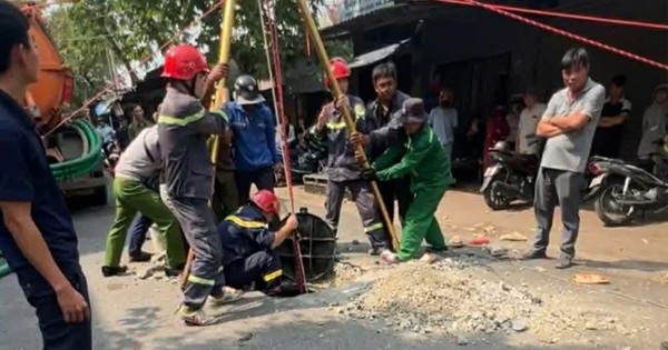 Thấy vậy, một nam công nhân khác dùng thang leo xuống để cứu người nhưng không may trượt chân, tiếp tục rơi xuống hố ga.