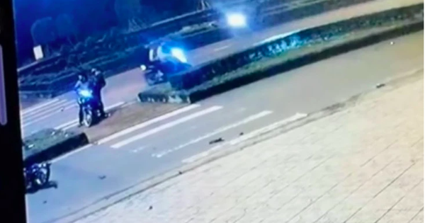 Một đoạn camera an ninh tại khu vực trên ghi nhận thời điểm trên nhóm thanh niên chạy rất nhanh. Một xe máy va chạm với một xe khác rồi va chạm với dãy phân cách giữa đường khiến người trên 2 xe văng xuống dãy phân cách.