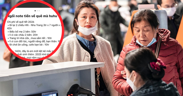 Mới đây, một bài đăng trên mạng xã hội đã thu hút sự chú ý khi chủ nhân thẳng thắn ghi ra toàn bộ chi phí dự kiến cho việc về quê ăn Tết của gia đình mình. Con số cuối cùng khiến nhiều người giật mình: 142 triệu đồng, chưa tính các khoản phát sinh.