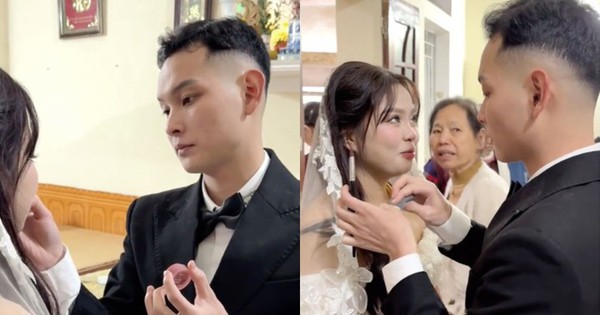 Clip đang nổi trên mạng xã hội TikTok ghi lại khoảnh khắc diễn ra trong ngày cưới , chú rể cầm son, hộp phấn và mút phấn để trang điểm cho cô dâu. Hành động rất tình cảm, tinh tế của chú rể khiến cộng đồng mạng tấm tắc khen ngợi.
