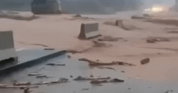 Clip nước tràn qua cao tốc Huế - Đà Nẵng tại vị trí Km14 vào sáng ngày 27/10 (Nguồn: Minh Hoàng)
