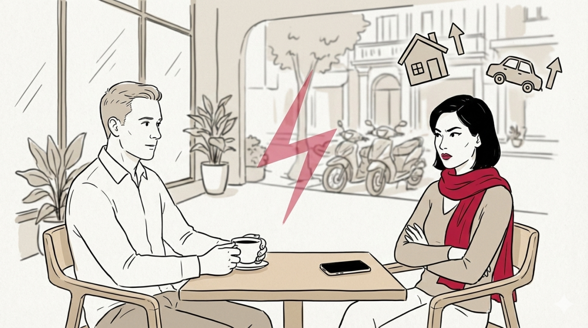 Tôi chia sẻ thẳng thắn là mình làm hành chính nhân sự ở công ty được hơn 5 năm, lương tháng tầm 20 triệu đồng, đợt nào có thưởng thì nhiều hơn. Vừa dứt lời, em nói luôn: “Em nhớ là mình có viết rằng mong đối phương có chí tiến thủ mà nhỉ”. Nghe thấy câu này, tôi lấn cấn, đầu lập tức nảy sang báo động đỏ. Tuy nhiên tôi vẫn đủ bình tĩnh nói rõ quan điểm rằng mình luôn cố gắng trong công việc, hàng năm đều được xét tăng lương thưởng, có mục tiêu tài chính rõ ràng. Vì đã bật báo động đỏ nên trong quá trình nói tôi luôn để ý thái độ, ánh mắt của em, thấy em đúng kiểu “chán ra mặt” luôn.