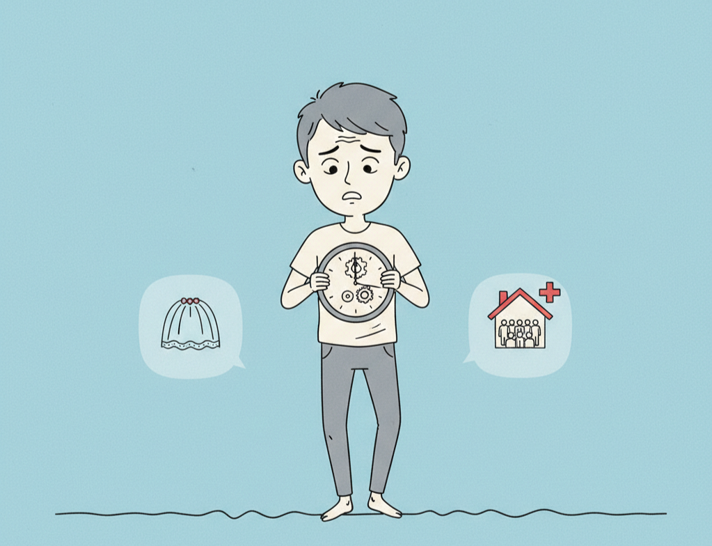 Tôi hiện sống cùng cha mẹ, các chị và ngoại già trong một căn nhà nhỏ tại Sài Gòn. Ba tôi sau vài lần tai biến đã yếu, tôi cần thay tã mỗi buổi trước khi đi làm và sau khi đi làm về, rồi lo ăn lo uống về đêm. Các chị bận rộn công việc kinh doanh nên chưa ai chịu lấy chồng. Nói đến đây chắc mọi người hình dung được cái khó khăn khi tôi lấy vợ sớm. Tôi không thể đưa vợ về ở cùng nhà vì không còn chỗ để sinh hoạt.