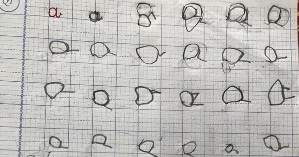 Mới đây, mạng xã hội xôn xao với hình ảnh bài tập viết chữ cái "a" của một học sinh lớp 1. Cô giáo chỉ yêu cầu rất đơn giản viết chữ "a" thường. Thế nhưng thay vì ra những dòng chữ tròn trịa như mong đợi, học sinh này lại khiến ai nấy sững sờ. Nhìn vào trang vở, mỗi chữ "a" đều là một tác phẩm sáng tạo theo đúng nghĩa đen: có chữ trông như hình tam giác, chữ thì giống cái bóng bay, chữ lại ngoáy vài đường như kí hiệu lạ. Có chữ còn lạc hẳn khỏi dòng kẻ, phóng to phóng nhỏ tuỳ hứng.