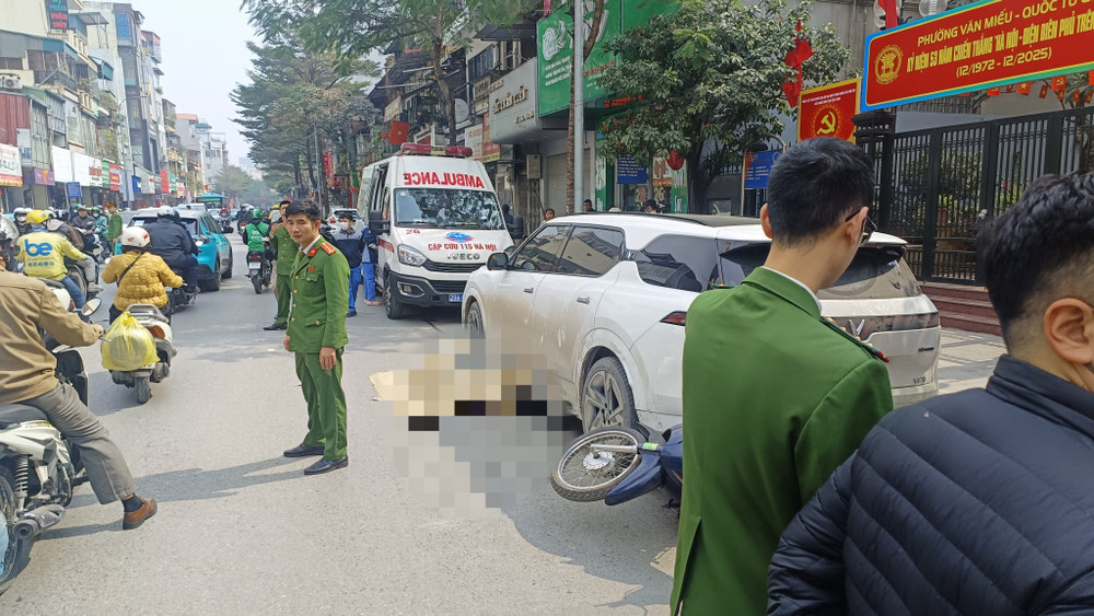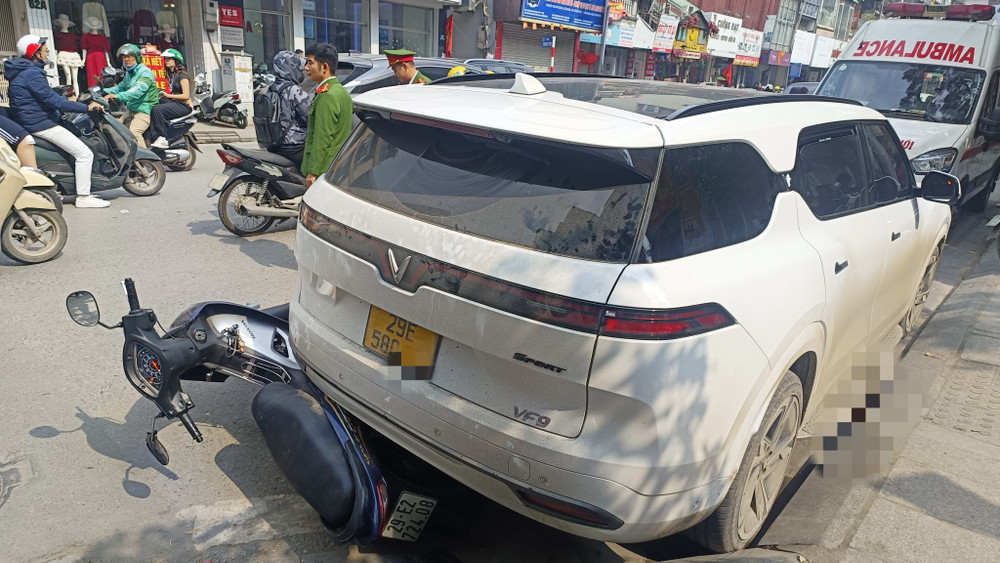 Vào thời điểm trên, nam tài xế điều khiển ô tô điện màu trắng BKS Hà Nội đang dừng ven đường. Sau đó, tài xế lùi xe, rồi xảy ra va chạm với xe máy chở 2 người phụ nữ.