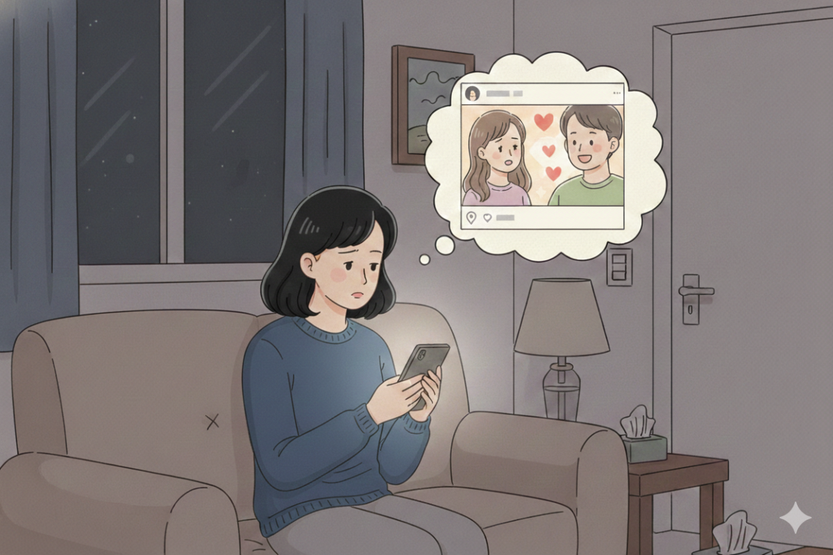 Cho đến hôm nay, khi biết người ấy đã có người mới, nhìn thấy ảnh họ chụp tình cảm với nhau đăng trên mạng xã hội, cảm giác trong tôi như sụp xuống. Một cú rơi rất nhanh, rất sâu, không kịp chống đỡ. Tôi không biết gọi tên cảm xúc trong lòng mình là gì, chỉ thấy tim đau nhói, trống rỗng và hụt hẫng đến khó tin. Tôi ngồi lặng đi, cổ họng nghẹn lại, nước mắt cứ thế rơi.