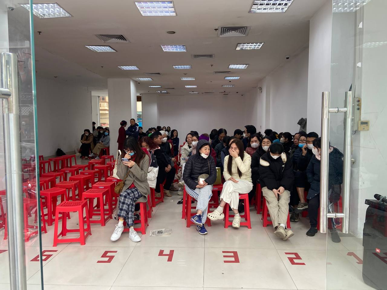 Chị Minh (sinh năm 1987) chia sẻ trong lúc ngồi chờ đến lượt mua vàng của mình: “Chị đi từ khoảng 7h kém mà đến giờ (gần 11h trưa) vẫn đang đợi đây, tại muốn mua vàng thương hiệu nên đành chấp nhận chờ đợi chứ mua vàng tư nhân thì nhanh hơn. Nay vàng giảm nên chị tranh thủ cố đi mua vì gia đình cũng sắp có việc”.