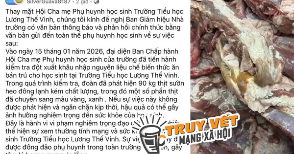 Theo một tài khoản đăng trên mạng xã hội, trước đó ngày 15-1, đại diện Hội cha mẹ học sinh của Trường Tiểu học Lương Thế Vinh trong quá trình kiểm tra đột xuất khâu nhập nguyên liệu chế biến thức ăn bán trú cho học sinh tại trường, phát hiện 90 kg thịt heo sườn heo đông lạnh, kém chất lượng.