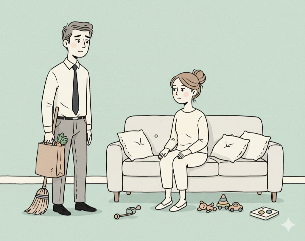 Kể từ khi có em bé, vợ nghỉ hẳn ở nhà vì thu nhập tôi tạm ổn, chuyện tiền bạc không phải lo nghĩ quá nhiều. Kể từ đó tôi thấy vợ lười hẳn, nhà cửa ít dọn dẹp. Buổi sáng tôi vẫn nấu ăn sáng, lau nhà, sau đó mới đi làm, trong khi vợ đang ngủ với con. Vợ ở nhà giữ con, con ngủ vợ cũng ngủ nên nhiều khi đi làm về thấy nhà cửa bừa bộn do con chơi chưa dọn, đồ ăn chưa chuẩn bị, tôi cảm giác rất mệt. Nhiều lúc công việc nhiều, áp lực, về nhà thấy bừa bộn, đồ chưa được chuẩn bị để nấu, hai mẹ con ngủ chưa dậy, tôi bực bội và mệt mỏi. Tôi nhiều lần nhắc nhở vợ, nhẹ có, bực bội quát lên cũng có, vợ vẫn như vậy.