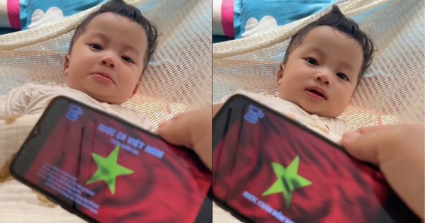 Đoạn clip đang nổi trên nền tảng TikTok ghi lại cảnh em bé khoảng 1 tuổi đang khóc quấy, khi bố mở nhạc Quốc ca Việt Nam để dỗ dành, bé nín khóc ngay lập tức, vẻ mặt chăm chú lắng nghe, tay còn đu đưa theo nhịp điệu.